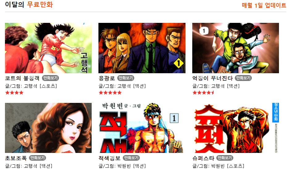 옛날부터 즐겨보던 스포츠서울 무료만화 등은 아직도 인기가 많은데요. 고행석, 강촌, 박원빈 등의 유명한 작품들이 다양하게 있으니 이용해 보시는것도 좋을 것 같습니다.