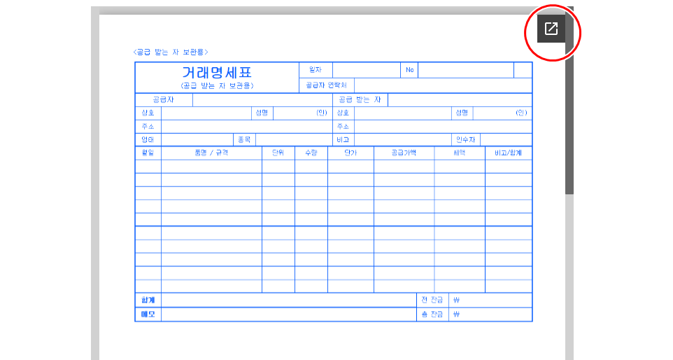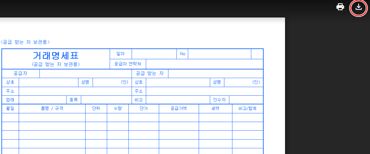 홈페이지로 넘어가시면 위와 같은 그림을 보실 수 있는데 우측에 빨간색 동그라미를 클릭하시면 또 다른 화면으로 이동합니다. 검은색 화면으로 이동하셨다면 우측에 다운로드 표시가 되어있는 빨간색 동그라미를 클릭하면 거래명세서 양식 무료다운 시작되니 이용하시면 됩니다. 해당 파일은 ms word로 만들어져있기 때문에 해당 파일이 있어야 불러올 수 있으니 활용하실 때 참고하시면 좋을 것 같습니다. 짤막하게 거래명세서 양식 무료다운 관련 얘기를 해봤는데 도움이 되셨길 바랍니다.