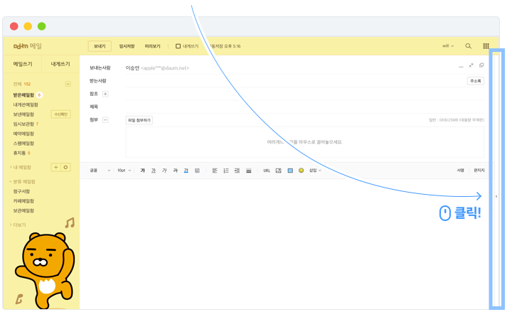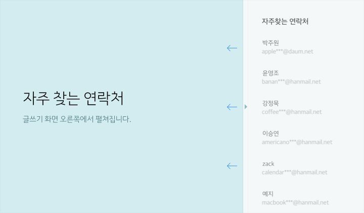 새로운 메일에서는 상단에 자주 쓰는 메일 주소가 안보여서 놀라셨을텐데 최신 다음 메일에서는 [자주 찾는 연락처]가 접음/펼침으로 되어있으니 참고하시기 바랍니다.