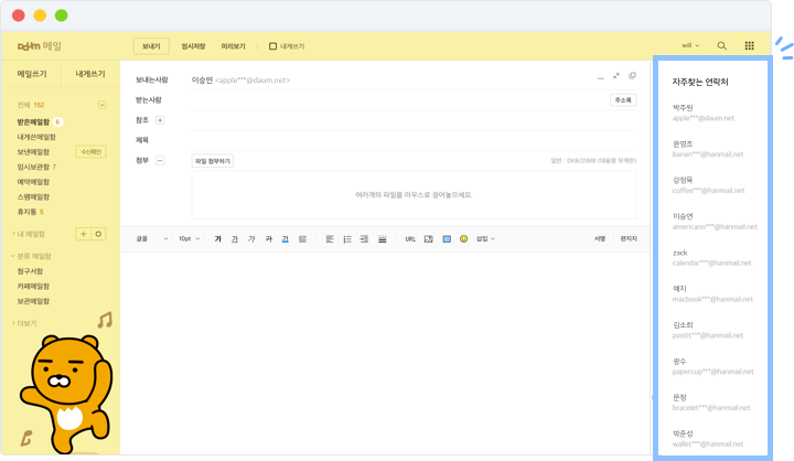 다음 메일은 메일 발송, 발송취소, 임시보관함, 스팸메일함, 주소록 등의 기능을 가지고 있으며 이 중에서도 특히 주소록 기능을 잘 활용하시면 좋습니다. 오늘은 보다 용이하게 다음 메일 자주찾는 연락처 추가하는법에 대해서 같이 알아보록 하겠습니다.