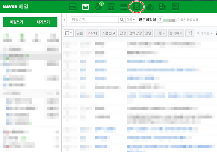네이버 메일 주소록 삭제는 일단 로그인하신 뒤에 아래와 같은 아이콘을 클릭하시면 활성화가 진행되는데요. 거두절미하고 전화기가 그려져 있는 곳을 클릭해봅시다.