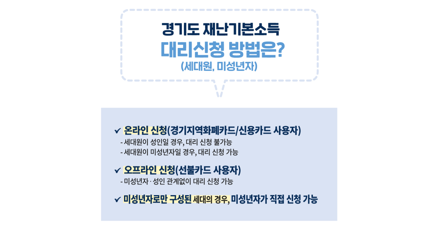 또한 경기도 재난소득은 기존 지역 화폐 이외에 신용카드와 선불카드로도 지급될 수 있다는 점 참고하시면 되고 선불카드 신청자는 별도의 위임장 없이 가족구성원 중 한 명이 나머지 구성원의 위임을 받아 대리 수령이 가능하지만 위임받았다고 거짓말하고 다른 가족 몫의 재난소득을 받을 경우 문제가 생길 수 있으니 주의하시는게 좋을 것으로 생각됩니다.